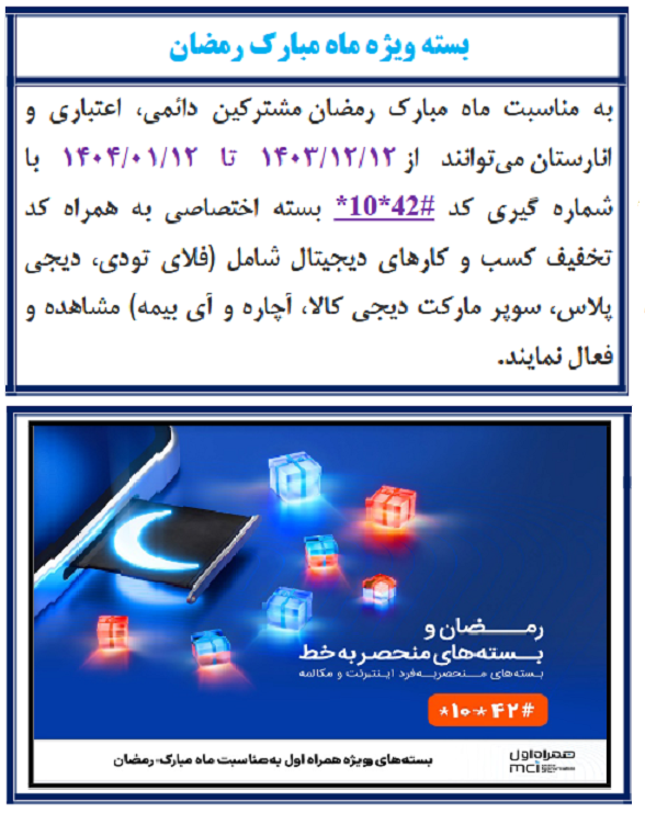 بسته ویژه ماه مبارک رمضان ۱۳ اسفند ۱۴۰۳ | ۰۹:۳۰ کد : ۴۹۹۵۸ اطلاعیه ارسال به دیگران نام شما ایمیل شما ایمیل دریافتکننده ارسال انصراف تعداد بازدید:۶۱۸۰ بسته ویژه ماه مبارک رمضان